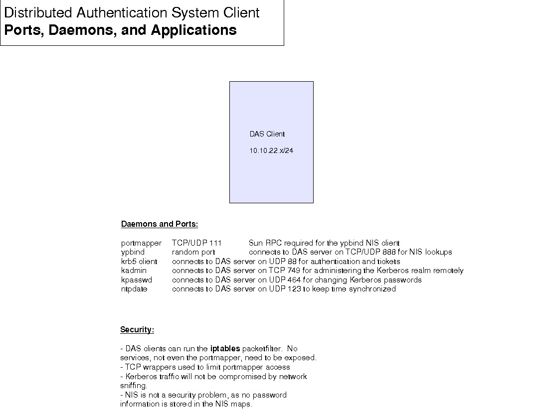 The DAS servers employ TCP wrappers, the iptables packet filter, and other mechanisms to restrict access. Lab users will not have accounts on the DAS servers. The servers will run a minimal number of services.